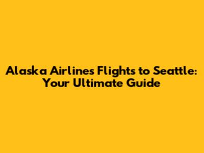 Alaska Airlines Flights To Seattle: Your Guide