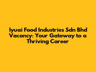Hey everyone! Are you on the hunt for a fantastic job opportunity? Well, look no further! This article is all about Iyuai Food Industries Sdn Bhd vacancy, a company that's making waves in the food industry. We're going to dive deep into what makes Iyuai Food Industries a great place to work, the types of roles they typically offer, and how you can snag one of those coveted positions. So, grab a cup of coffee (or your favorite beverage), sit back, and let's explore the exciting world of career possibilities at Iyuai Food Industries!