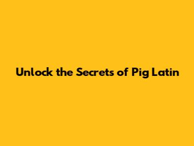 Unlock The Secrets Of Pig Latin